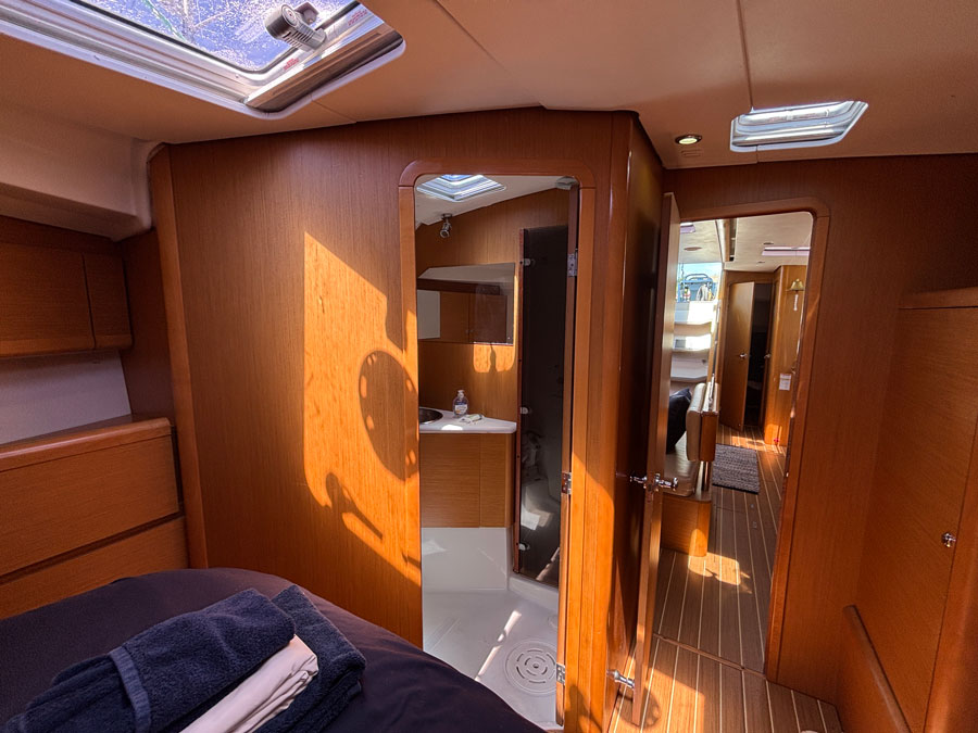 Above deck, Hanalei’s modern design provides both functionality and style. The twin helm cockpit offers easy handling and great visibility, while the large cockpit area is ideal for dining al fresco or simply enjoying the sea breeze. Her performance rig and responsive handling make her a joy to sail, whether you’re gliding through protected bays or catching a breeze in open water.
